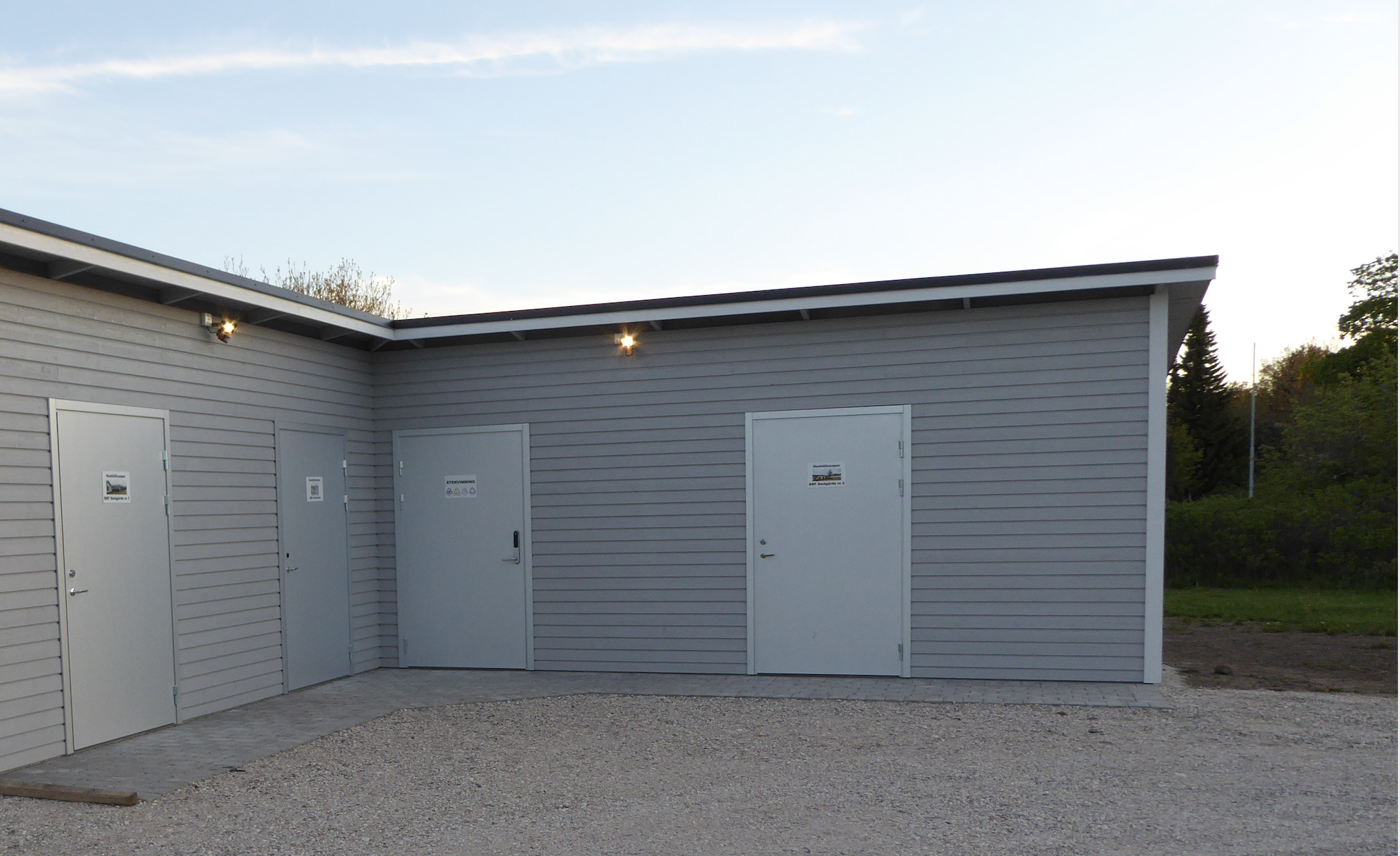 Man kan också köpa en sopsäck för blandsopor i livsmedelsaffärer för 135:- (ex-vis Bysen vid Tofta strand eller på återvinningscentralerna). Den kan lämnas i soprummet till höger på bilden, ÅVC eller vid en station som ligger nära rondellen före man kommer fram till färjans check-in.